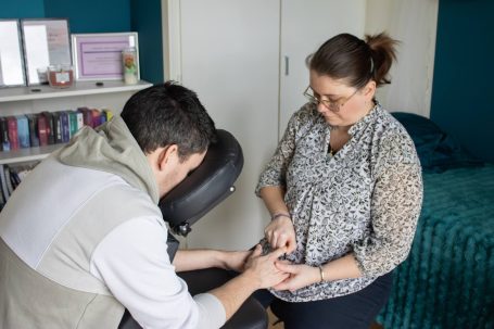 - Le praticien utilise uniquement les mains, avec ou sans contact